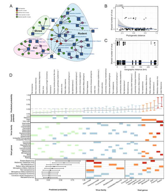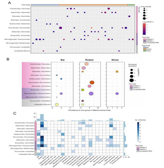 - Amrywiaeth firom uchel mewn mamaliaid bach gwyllt:Mae darganfod 39 o firysau RNA, gan gynnwys 26 o rywogaethau newydd, yn datgelu cronfa firysau fawr yn y rhanbarth ac yn adrodd am y tro cyntaf ar firysau newydd â photensial sonotig uchel (e.e., Ystlumod ledantefirws 2).