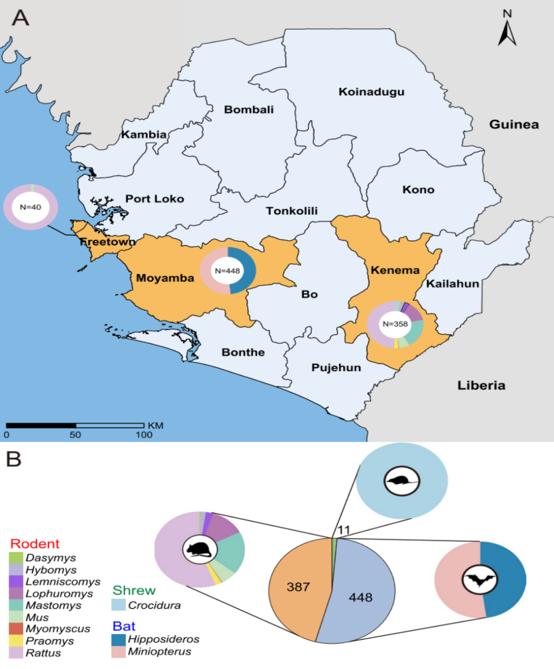 Cynhaliodd yr astudiaeth hon ddadansoddiad dilyniannu trawsgrifiadol ar 846 o anifeiliaid gwyllt a gasglwyd yn Sierra Leone, gan gynnwys cnofilod, ystlumod a chwilod bach. Yn seiliedig ar ddilyniannau genynnau polymerase RNA sy'n ddibynnol ar RNA (RdRp) cyflawn, nodwyd cyfanswm o 39 o firysau RNA sy'n gysylltiedig â mamaliaid, yn cynnwys 13 o firysau a oedd yn hysbys o'r blaen a 26 o firysau newydd.