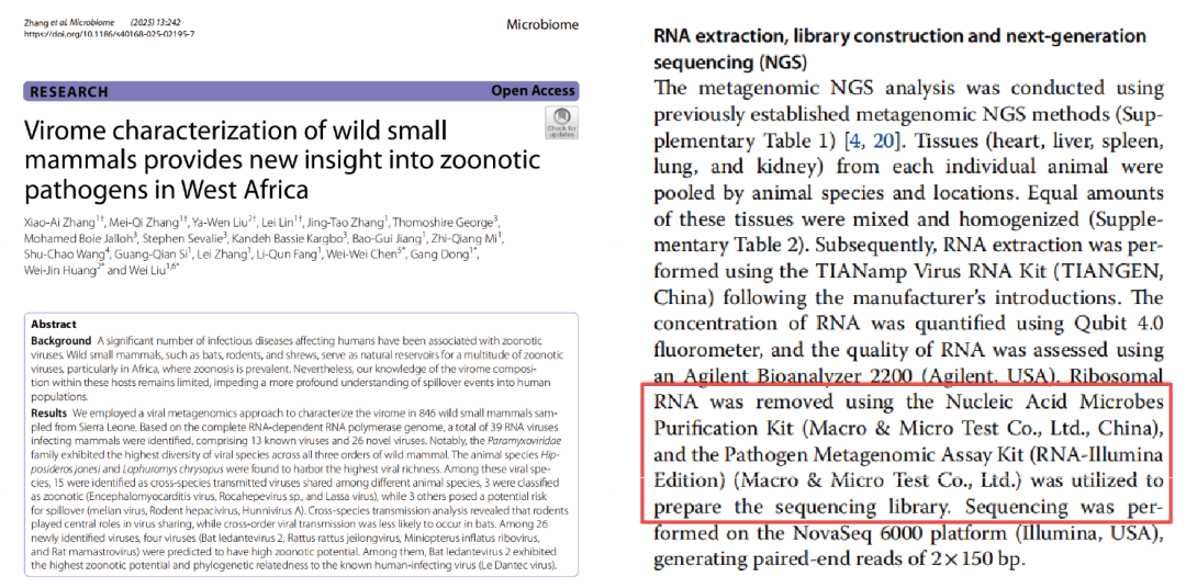 Astudiaeth ddiweddar a gyhoeddwyd ynMicrobiomcynhaliodd ddadansoddiad metagenomig firaol ar 846 o famaliaid bach gwyllt—gan gynnwys ystlumod, cnofilod, a chwilod bach—a gasglwyd yn Sierra Leone, Gorllewin Affrica. Nododd yr astudiaeth gyfanswm o 39 o firysau RNA sy'n gysylltiedig â mamaliaid, yn cynnwys 26 o firysau newydd a 13 o firysau a oedd yn hysbys o'r blaen. Ymhlith y rhain, y teulu Paramyxoviridae a ddangosodd yr amrywiaeth uchaf, tra bod cnofilod yn cynnwys y nifer fwyaf o rywogaethau firaol (n = 26).